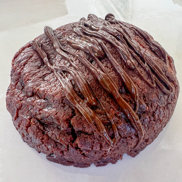 Une pâte moelleuse cacaotée aux pépites de chocolat noir, cachant un cœur coulant de ganache fondante pour une expérience ultra chocolatée.